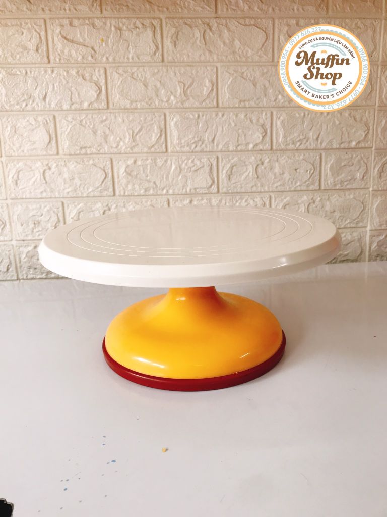 Bàn xoay là dụng cụ chuyên dùng trong làm bánh kem giúp cho bánh được tròn đều, lớp kem mượt và mịn, bề mặt bánh đơn và mà lại hiệu quả. Một chiếc bánh ngon nhờ phần cốt bánh ngon nhưng để bánh kem đẹp thì trang trí kem lại là yếu tố quyết định.