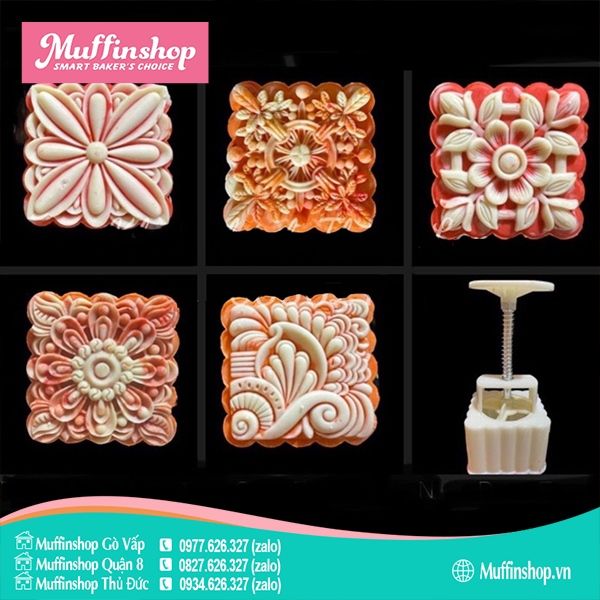 Khuôn trung thu 200g Sóng Hoa Lá 5M vuông