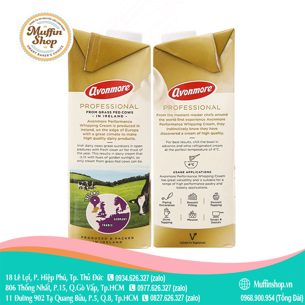 Whipping cream Avonmore là thương hiệu kem sữa nhập khẩu đến từ Ireland, mang đến hương vị và chất lượng mới lạ cho người tiêu dùng.